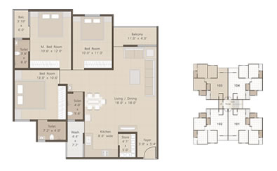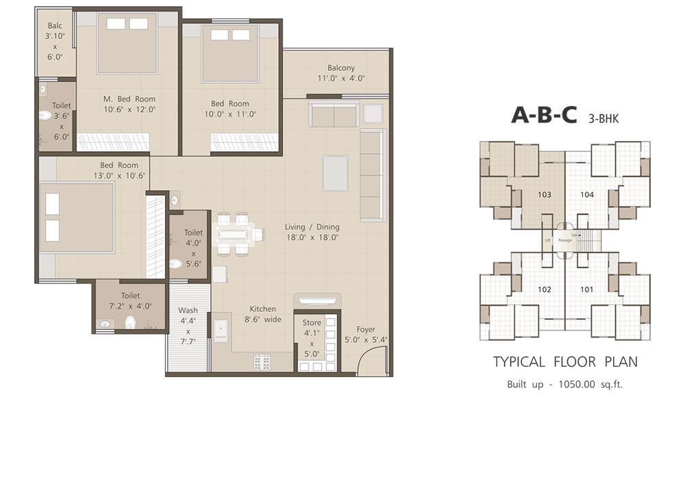 TOWER A-B-C | 1050 SQ.FT. BUILT UP