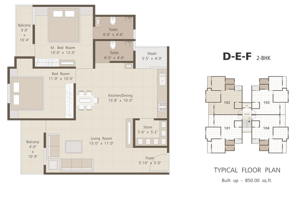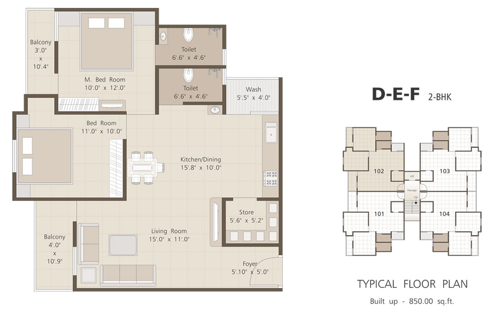 TOWER D-E-F | 850 SQ.FT. BUILT UP